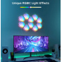 Vylepšete interiér a herní, filmové a hudební zážitky s designovým světlem Hexa Smart LED. Díky technologii RGBIC zobrazuje až 57 barev najednou. Barevnost si můžete nastavit po jednotlivých sekcích a kreativně si pohrát. Celkově umí zobrazit až 16 milionů barev s intenzitou 1-100%. Určitě si vyberete z mnoha režimů osvětlení a při poslouchaní oblíbené hudby si můžete zvolit také ze 6 rytmických režimů. Světla se ovládají hlasem přes Siri, Amazon Alexa nebo Google Assistant nebo přes aplikaci Govee Home na chytrém telefonu nebo tabletu. Světlo je určeno na instalaci na zeď a jeho tvar si můžete přizpůsobit podle vlastní fantazie. Jednoduchá instalace bez vrtání s životností až 50.000 hodin.