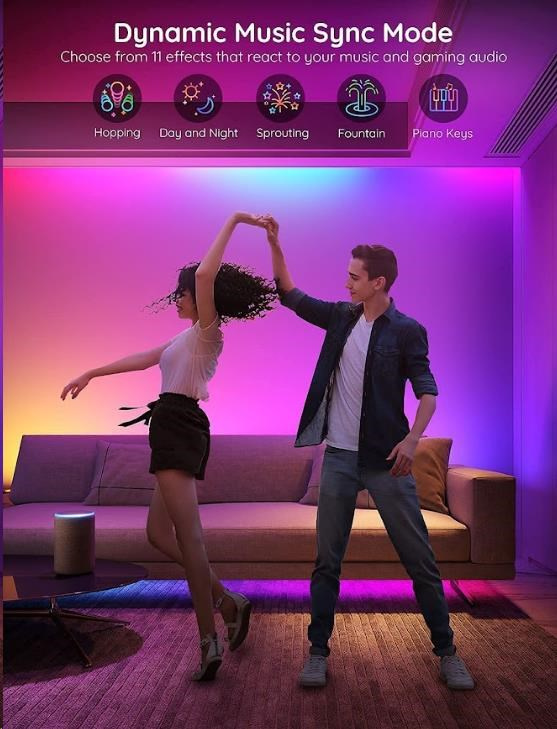 Úsporné interiérové chytré LED pásky Govee WiFi RGBIC PRO SMART 5m s životností až 50.000 hodin udělají z vašeho domu designový skvost. Můžete je použít prakticky všude - obývací pokoj, ložnice, kuchyň, pracovna atd. Zobrazuje až 16 milionů barev, jejichž intenzitu lze nastavit od 1-100 % a díky technologii RGBIC si můžete rozdělit pásek na samostatné segmenty, pro které si pak můžete volit rozdílné barvy. Vyberte si ze 64 režimů osvětlení a při poslouchaní oblíbené hudby se budou světla synchronizovat díky vestavěnému mikrofonu a vytvoří nezapomenutelný zážitek. Nebo si prostě nastavte svoje vlastní barevné kombinace v režimu DIY. Příkazy můžete zadat také hlasem přes Siri, Amazon Alexa nebo Google Assistant, přes aplikaci Govee Home na chytrém telefonu nebo tabletu nebo přes Control box. Světlo má délku 5 metrů a jeho instalace je velice jednoduchá. Pomocí časovače můžete světla zapínat a vypínat automaticky podle západu a východu slunce, nebo usínání a vstávaní.