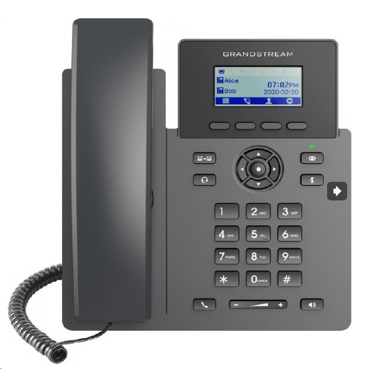Součástí nové Grandstream GRP řady IP telefonů je i GRP2601W. Jde o základní dvoulinkový model navržený pro hromadné nasazení a snadný management. Vyznačuje se elegantním designem a sadou funkcí nové generace, včetně 5 cestné audiokonference pro maximální produktivitu, podporu WiFi, podporou EHS pro náhlavní soupravy Plantronics, Jabra a Sennheiser , vícejazyčnou lokalizaci včetně české a slovenské.