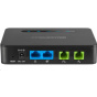 IP brána disponuje dvěma FXS porty, dvěma SIP profily, duálním gigabitovým portem a integrovaným NAT routerem.