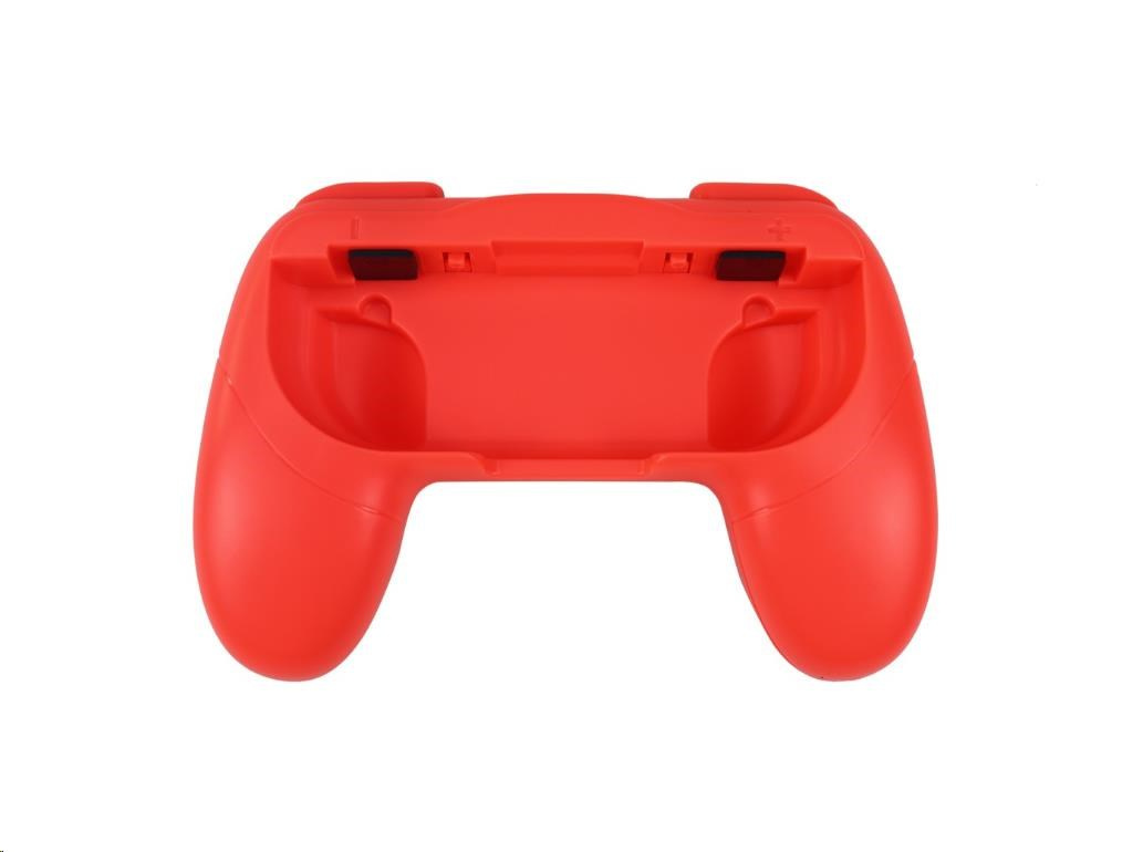 - Ergonomický design – tvar úchytu ovladače poskytuje prvotřídní úchyt a pohodlí při držení ovladače Joy-Con™ v pozici na boku. Zakřivené okraje úchytu ovladače udrží vaše ruce v uvolněnějším stavu během hraní, díky čemuž předejdete napětí a bolesti, když budete malý dálkový ovladač držet delší dobu