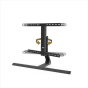 - polohovatelný televizní držák s moderním designem pro postavení na stůl nebo jinou plochu - vhodné pro televizory s úhlopříčkou cca 81 až 165 cm (32" až 65") - ideální jako náhrada originálního stojánku televizoru - nastavení výšky v pěti stupních (po cca 4 cm) - držák lze otáčet do stran a naklápět - neklouzavá spodní část zajišťuje stabilní pozici a chrání nábytek před poškrábáním - otvory pro skryté vední kabelů Technické parametry: - podpora VESA (rozteč závitů): 200x200 až 600x400 - doporučená úhlopříčka: 81 až 165 cm (32" až 65") - podpora závitů na TV: max. M8 - rozsah otáčení do stran: 70 st. - rozsah naklápění: +5/-10 st. - nastavení výšky: 68-83 cm (horní hrana) - šířka: 90,5 cm - hloubka: 34,2 cm - max. nosnost: 40 kg - materiál: kov - barva: černá.