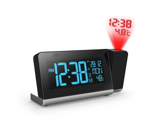 GARNI 165 Arcus - digitální budík s projekcí času a vnitřní teplotyZobrazení času:Digitální; Provedení:Stolní; Vlastnosti:Měření teploty, Promítání času, Datum.