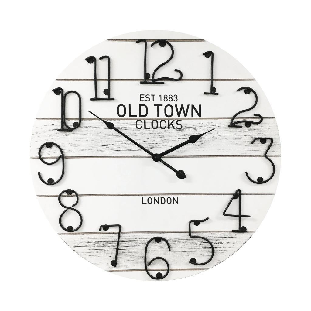 - Ciferník světlý se vzorem dřeva, číslice černé