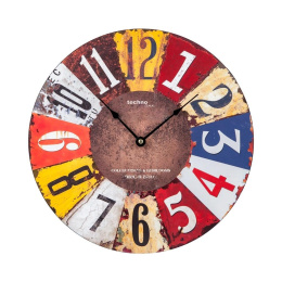 • analogové nástěnné hodiny • čas řízený krystalem • materiál plast • průměr ciferníku 250 mm • napájení na 1 ks baterie typ AA 1,5 V (tužková, není součástí balení) • ciferník barevný, číslice barevné.