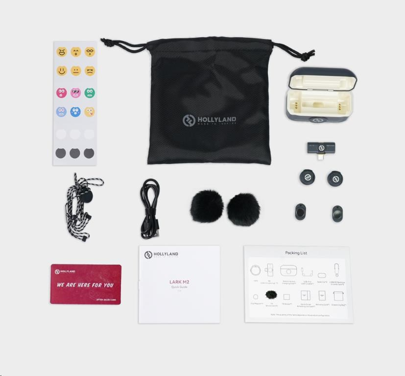 LARK M2 se dodává se sadou užitečného příslušenství, včetně větrných skel pro nahrávání venku, kabelových konektorů pro snadné připojení a speciálně vyrobeného náhrdelníku pro každý TX. S tímto příslušenstvím budete mít vše, co potřebujete k nastavení zařízení LARK M2 a k využívání jeho funkcí.