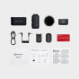 It includes one compact clip-on transmitter (just 14 g) equipped with a built-in microphone, AI noise cancellation with adjustable levels, and 32-bit float backup recording that stores up to 14 hours of audio on internal memory. You can record confidently in any environment, knowing that unexpected volume spikes or noise won’t ruin your take.