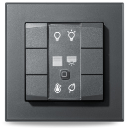 Programovatelný bezdrátový Nástěnný dálkový ovladač v antracitové barvě (HmIP-WRC6-A) je součástí systému chytré domácnosti Homematic IP.