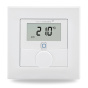 Bezdrátový nástěnný termostat HmIP-WTH-1 představuje inteligentní způsob pro regulaci vytápění a úsporu energií. Disponuje časově řízenou regulací teploty a může ovládat až několik termostatických radiátorových hlavic HmIP v jedné místnosti. Zařízení lze použít jako prostorové čidlo pro měření a nastavení teploty v rámci multizónového regulačního systému. Díky integrovaným čidlům umožňuje mimo teploty také vyhodnocovat stav vlhkosti vzduchu v místnosti, a tak efektivně řídit vzduchotechniku nebo ventilaci. Regulace teploty probíhá automaticky a ohřev se provádí pouze v případě potřeby. Teplotu lze přesně nastavit pomocí multifunkčního prstencového ovladače v krocích po 0,5 °C. Termostat disponuje funkcí Boost pro rychlé vytopení místnosti a je vybavený podsvíceným LED displejem pro zobrazení aktuálních hodnot teploty a vlhkosti.