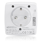 Snadno a rychle lze spínanou zásuvku instalovat, a to bez použití montážních nástrojů. Po zapojení do zásuvky elektrické sítě 230 V je zařízení okamžitě připraveno k provozu. Díky své kompaktní konstrukci neblokuje okolní zásuvky.