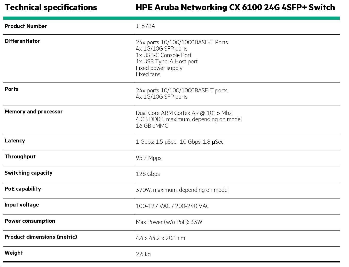 | | Aruba 6100 24G 4SFP+ Switch (JL678A) |