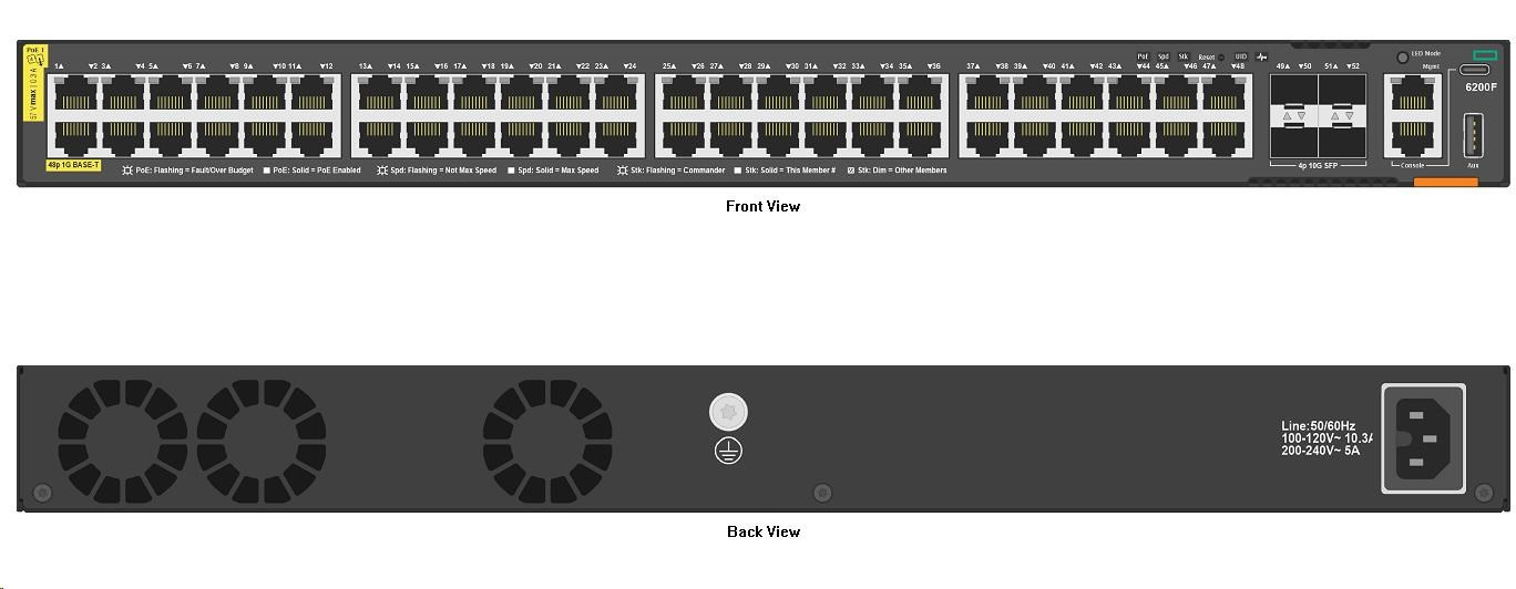 HPE Aruba Networking CX 6200F 48G Class-4 PoE 4SFP+ 740W Switch.