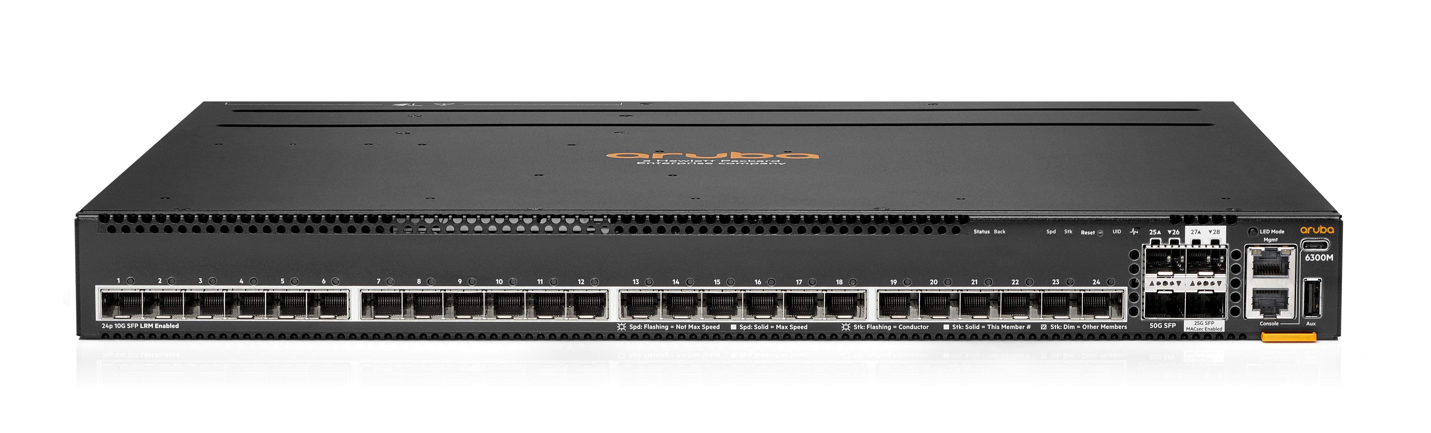 HPE Aruba Networking CX 6300M 24p SFP+ LRM support and 2p 50G and 2p 25G MACSec Switch R8S92AR RENEW