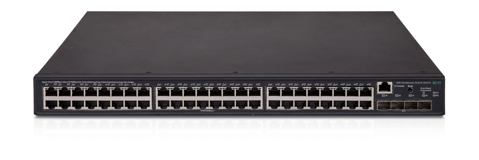 | HPE FlexNetwork 5130 48G PoE+ 4SFP+ (370W) EI Switch (JG937A) | ||