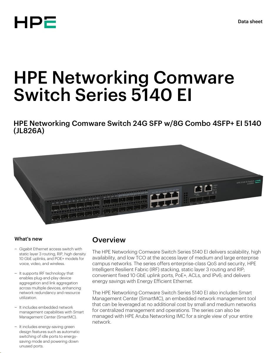 HPE Networking Comware Switch 24G SFP w/8G Combo 4SFP+ EI 5140 JL826AR RENEW