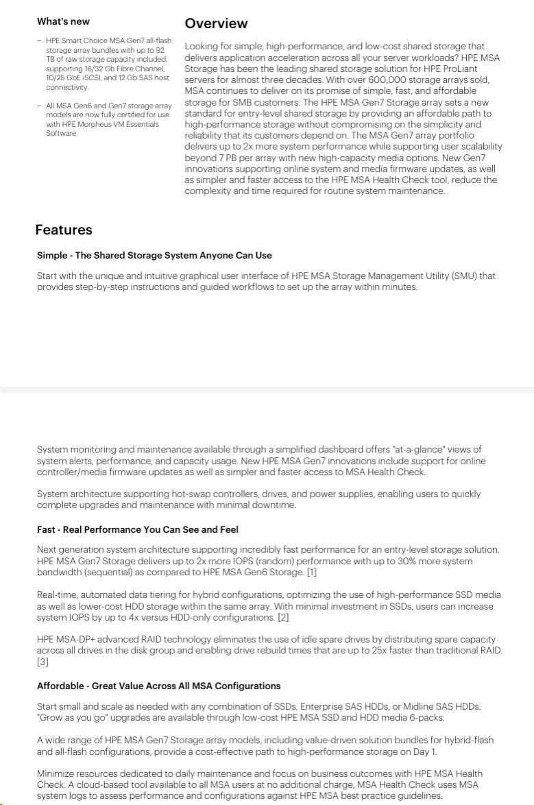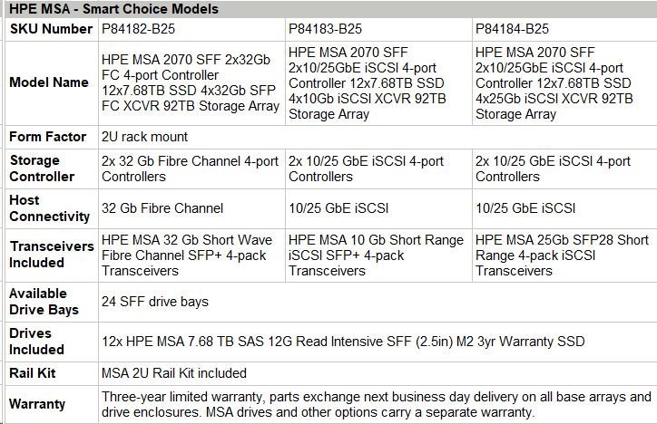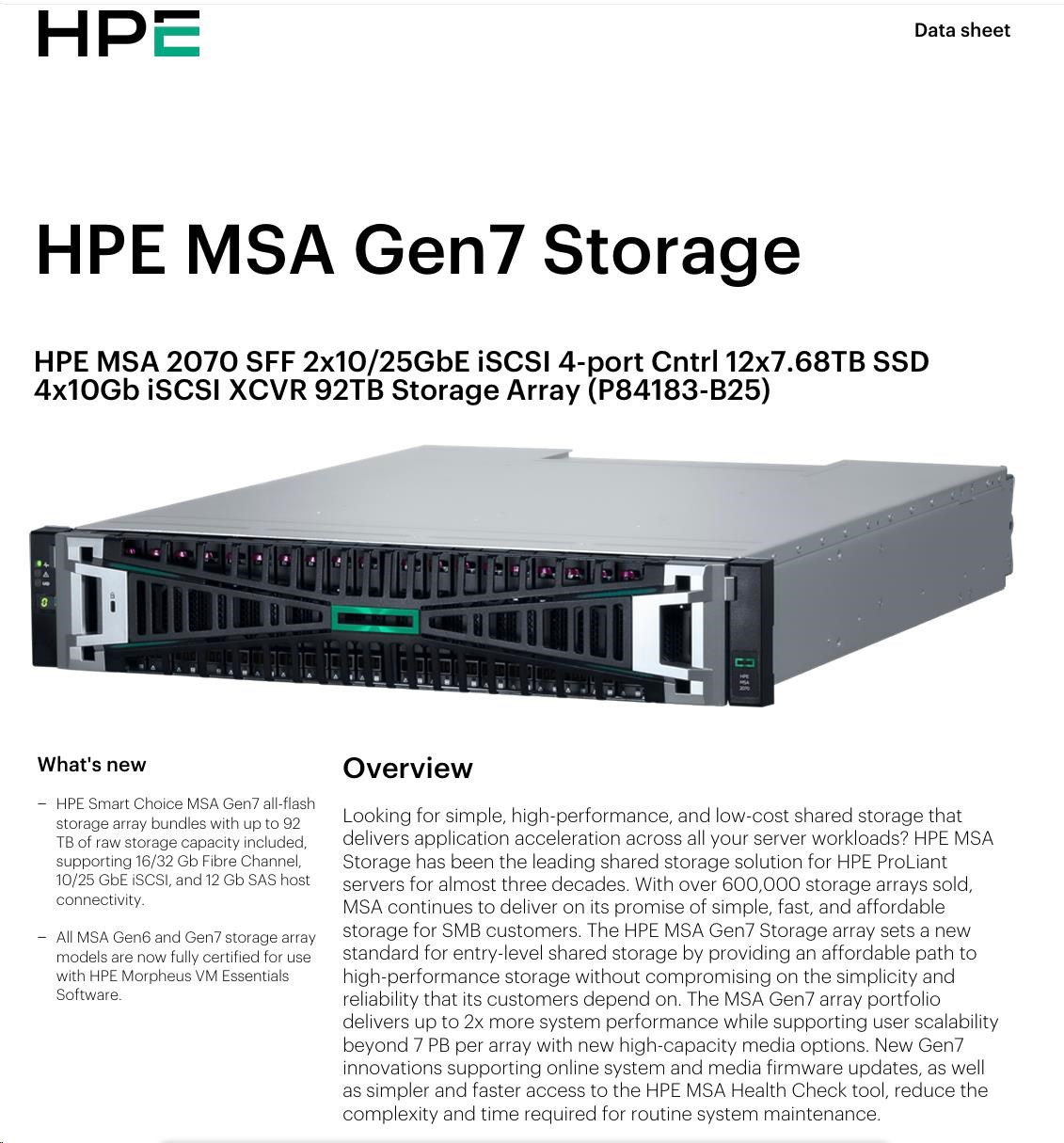 HPE MSA 2070 SFF 2x10/25GbE iSCSI 4-port Controller 12x7.68TB SSD 4x10Gb iSCSI XCVR 92TB Storage Array Smart Choice.