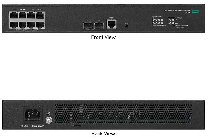 HPE Networking Comware 5120v3 8G PoE 2 SFP+ 125W Fanless Campus Switch S0F79A