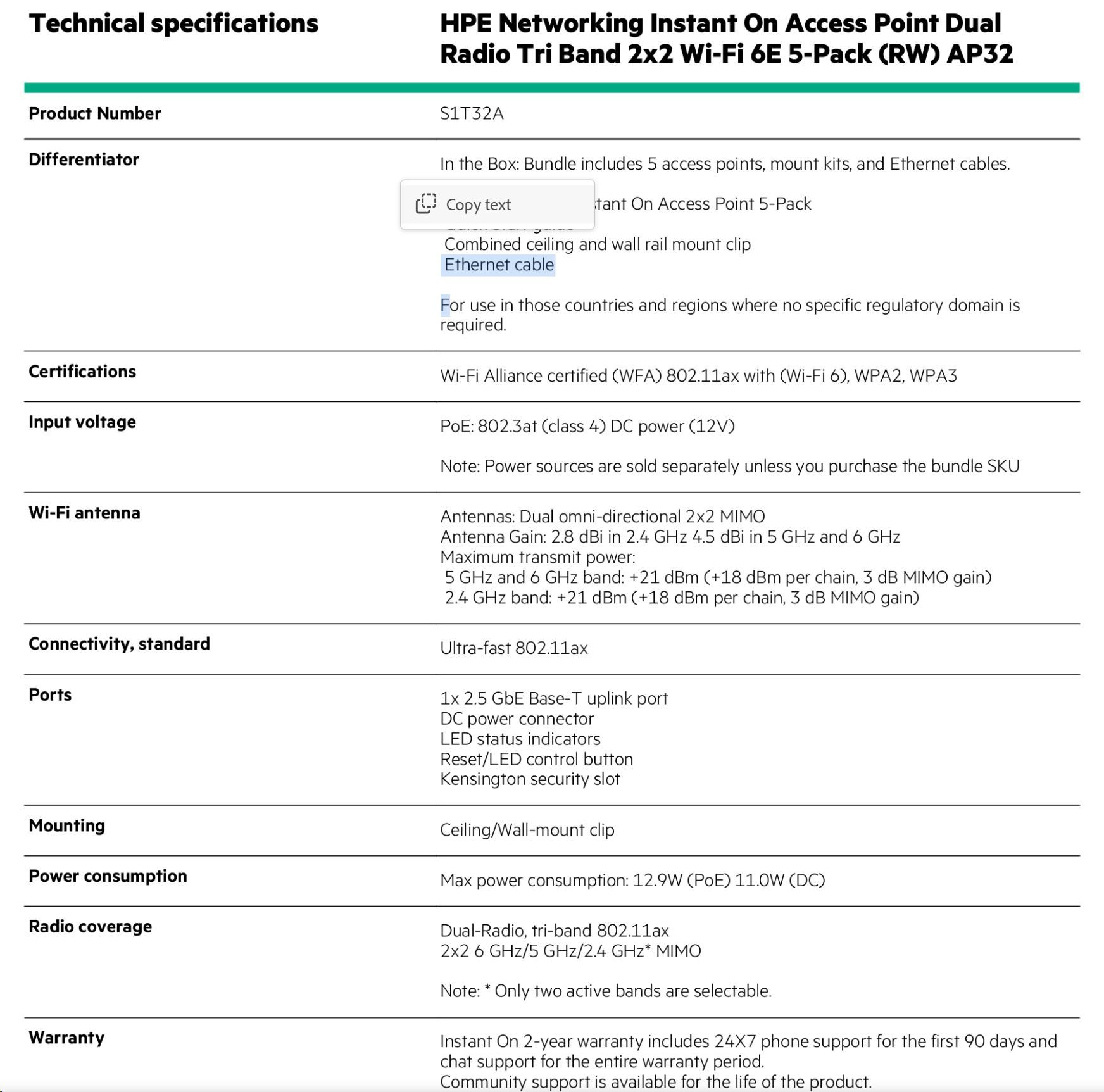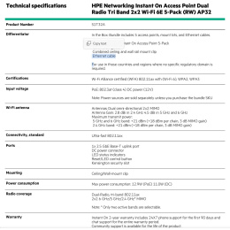 Instant On 2-year warranty includes 24X7 phone support for the first 90 days and chat support for the entire warranty period. Community support is available for the life of the product.Data sheet Page 4 For additional technical information, available models and options, please reference the QuickSpecs Make the right purchase decision. Contact our presales specialists. HPE Aruba Networking Services HPE Aruba Networking services simplify and accelerate the life of the product.