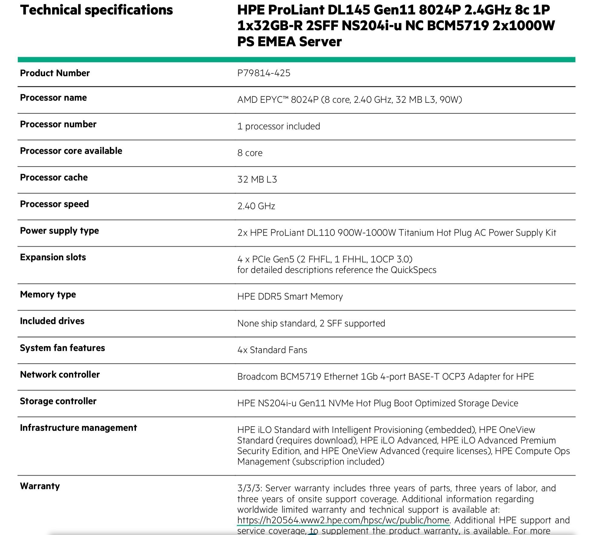 | Processor name | AMD EPYC™ 8024P (8core, 2.4GHz 32MB L3 90W) |
