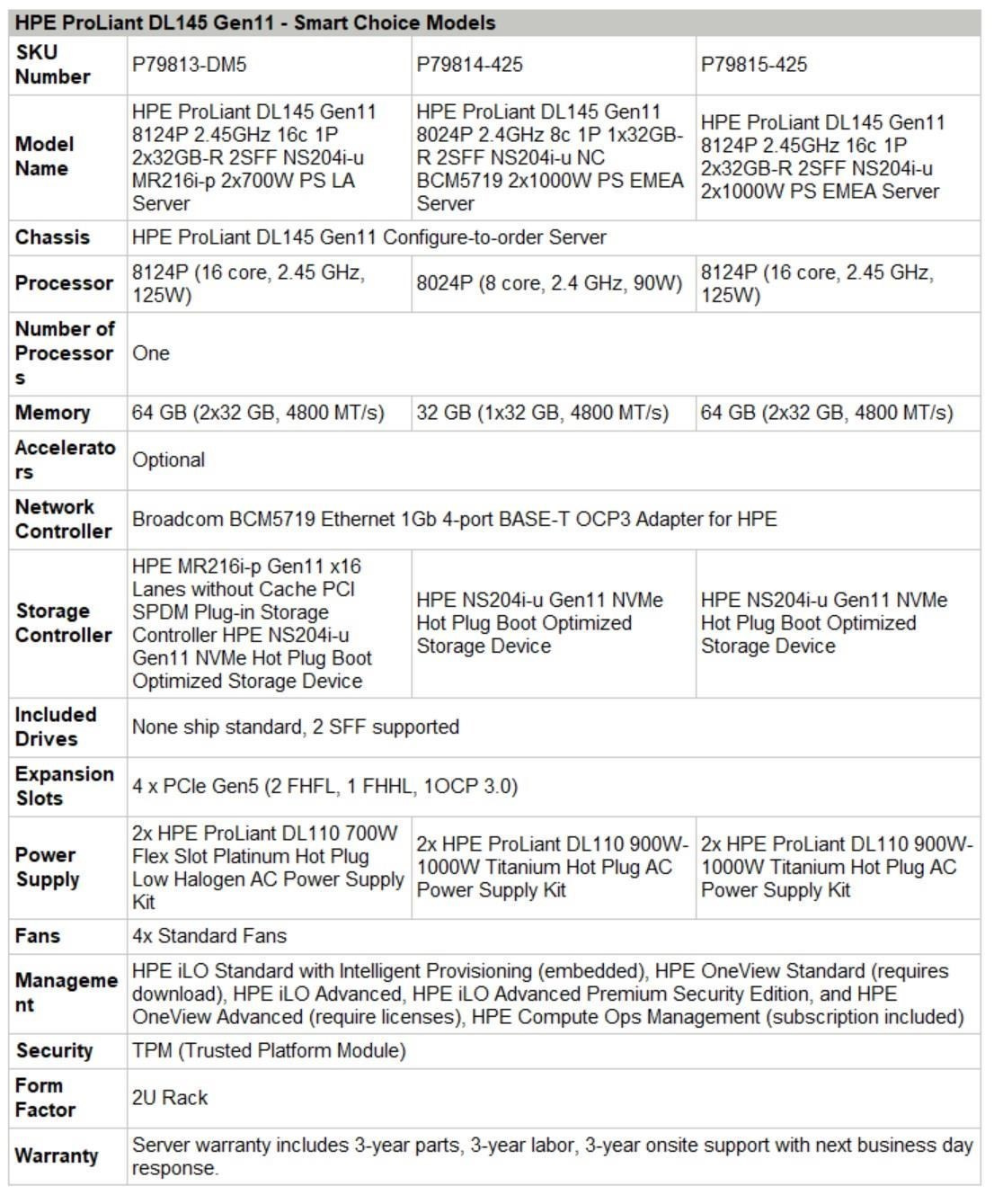 | Expansion slots | 4 x PCIe Gen5 (2 FHFL, 1 FHHL, 1OCP 3.0) for detailed descriptions reference the QuickSpecs |