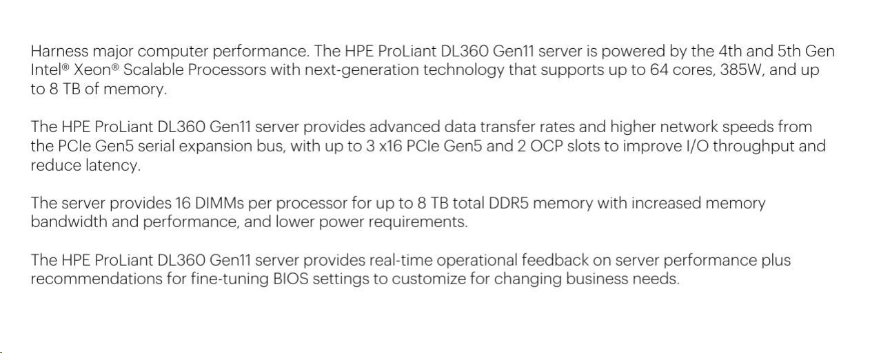 Model Name HPE ProLiant DL360 Gen11 5415+ 2.9GHz 8-core 1P 32GB-R NC 8SFF 800W PS Server