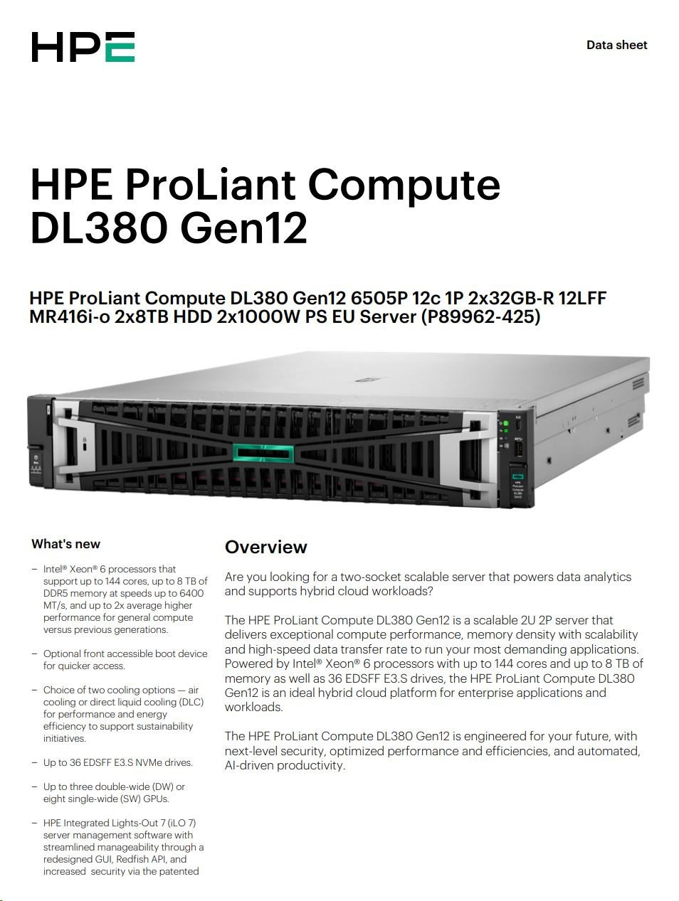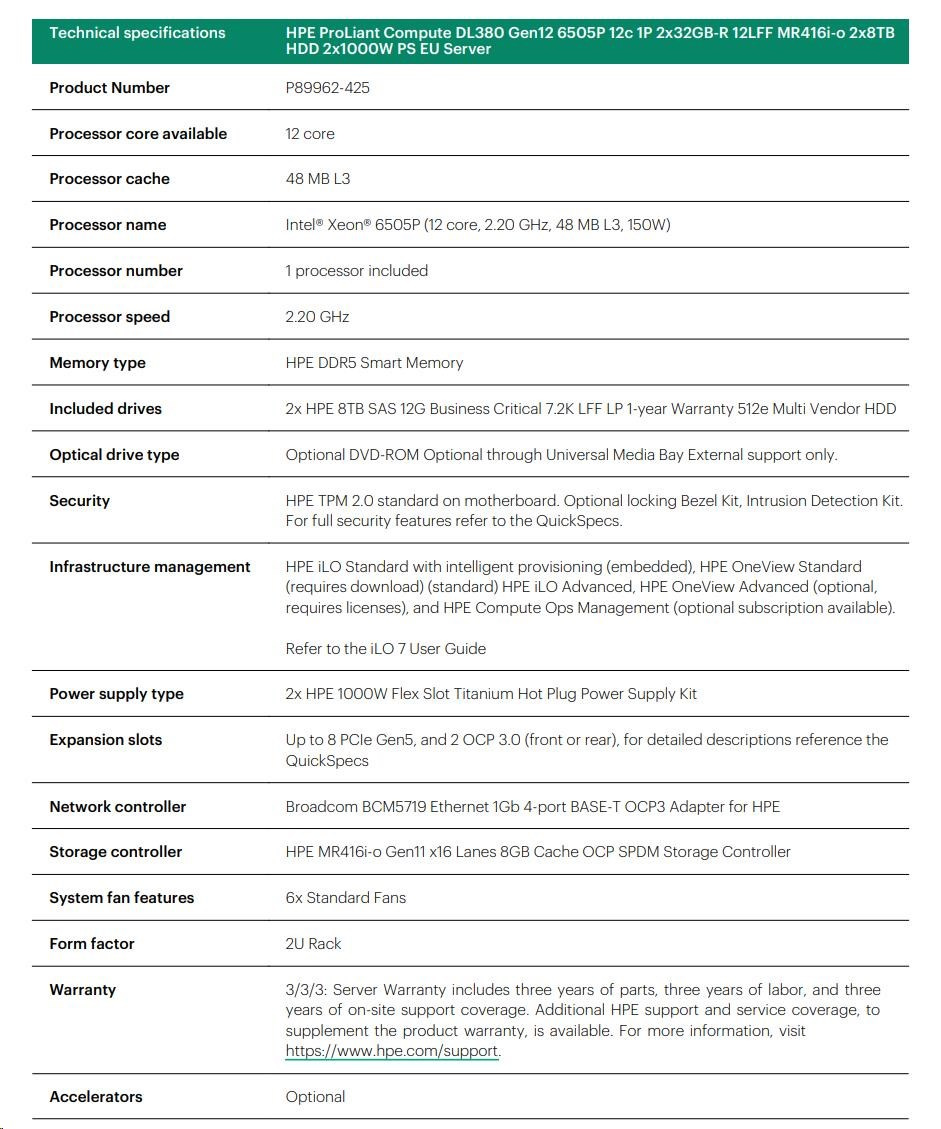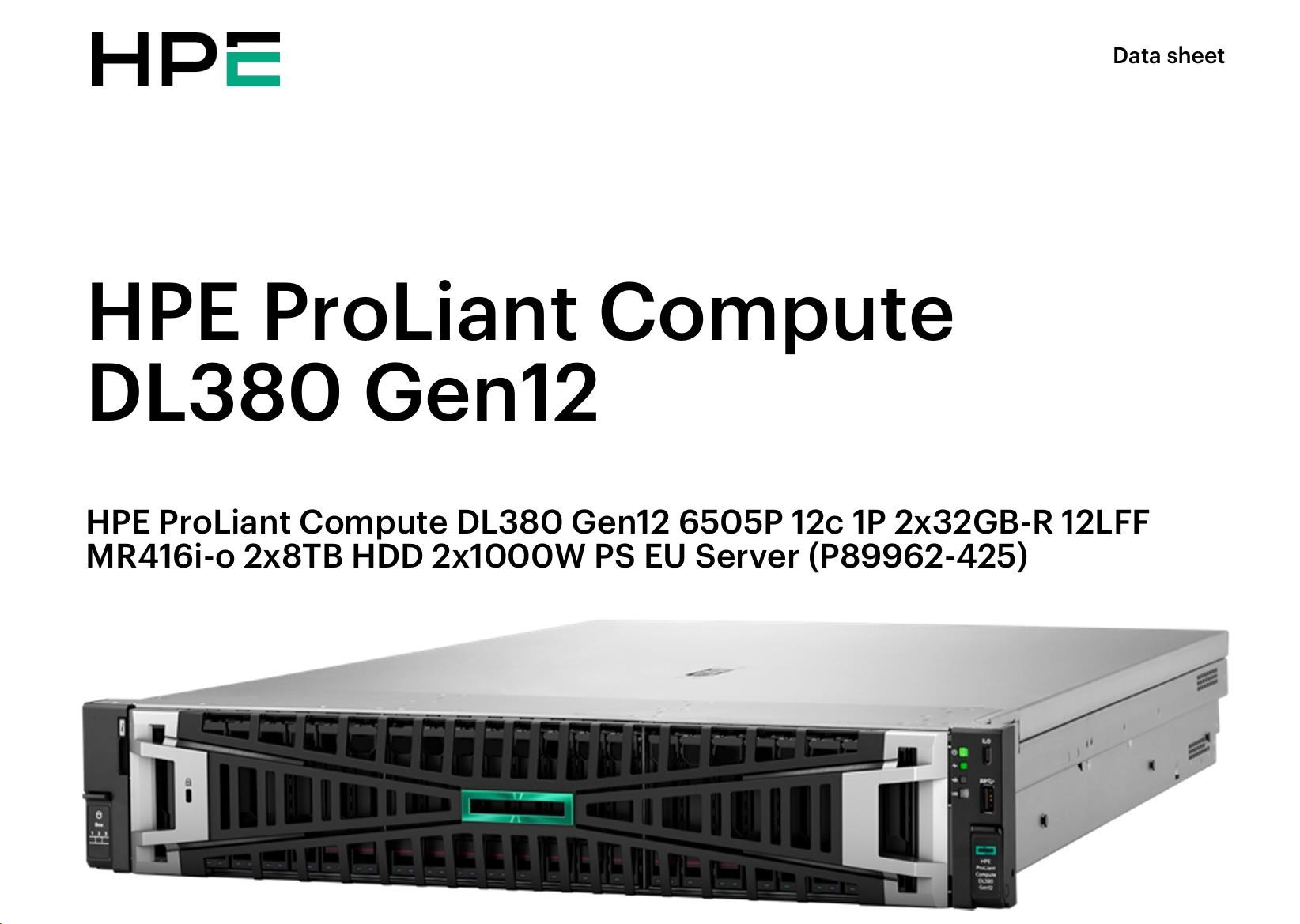 HPE PL DL380g12 6505P (2.2/12C) 2x32G (P69727) 2x8TB MR416i-o 2x1000W 10GbE NBD333 Smart Choice.