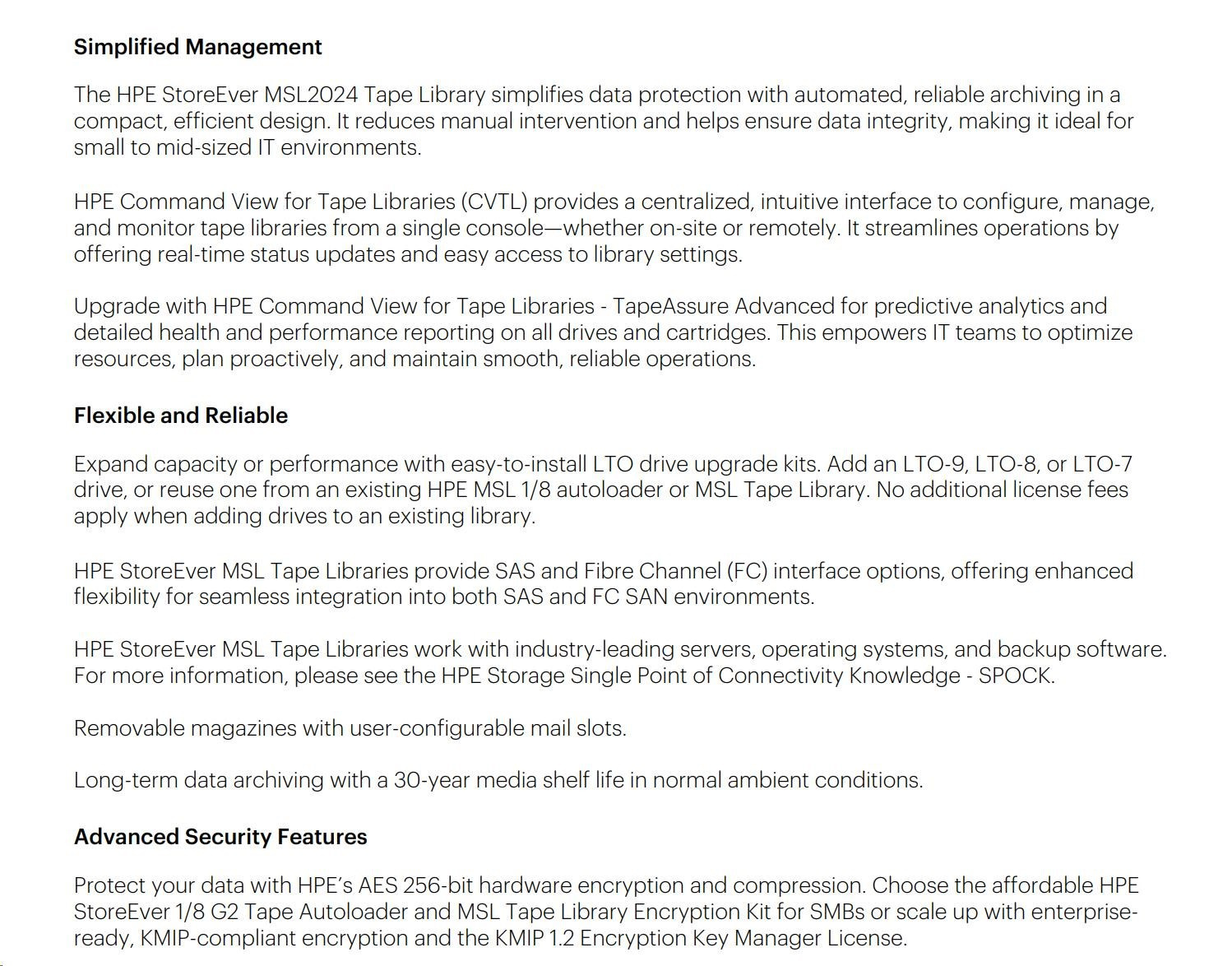 - HPE Smart Choice MSL2024 models featuring LTO-8 and LTO-9 drives