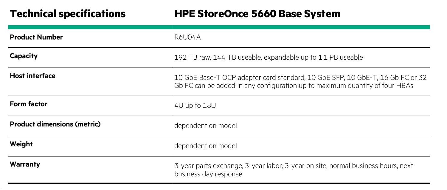 HPE StoreOnce 5660 System with 2 x 1.9TB SSDs for OS and 8 x 6.4 TB SSD disks for Data Cache.