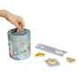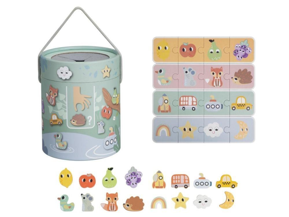 Společenská hra pro děti i celou rodinu Hmatej a najdi nabízí spoustu zábavy a možností ke hře. Hra, která dokonale potrénuje a zdokonalí motorické dovednosti, spočívá v hledání správného dřevěného předmětu v kyblíku, kdy pouze hmatem musí hráč najít požadovaný tvar. Hru můžete hrát různým způsobem a přizpůsobit ji věku i dovednostem každého hráče. Užijte si společné chvíle při hmatání a hledání zvířátek, dopravních prostředků a dalších tvarů..