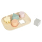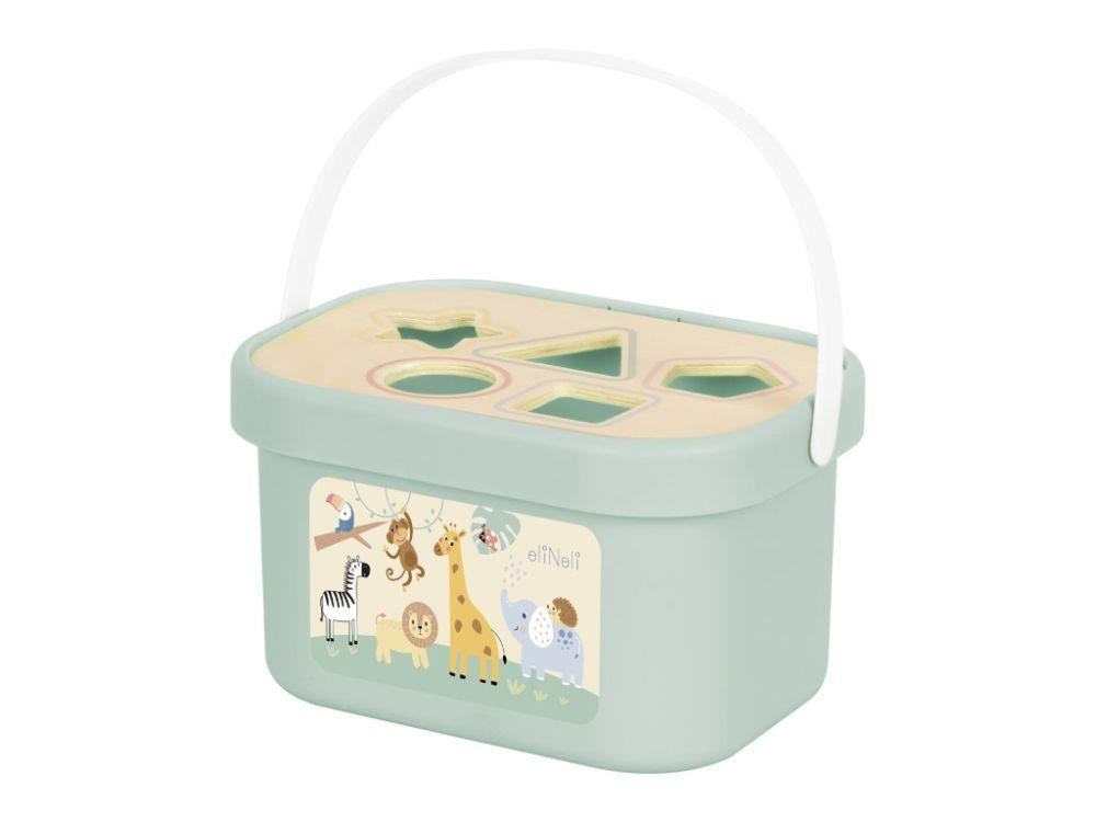 Hrací box s nejoblíbenějšími hračkami pro děti od 1 roku je krásnou a zároveň multifunkční hračkou. Box sám o sobě je vkládačkou s otvory ve víky pro vkládání kostek různých tvarů. V praktickém boxu na děti čeká překvapení v podobě tahací dřevěné žirafy a pyramidy s lvíčkem. Sada hraček je díky boxu snadno přenosná a rychle uklizená, děti si ji mohou vzít s sebou na návštěvu i dovolenou..