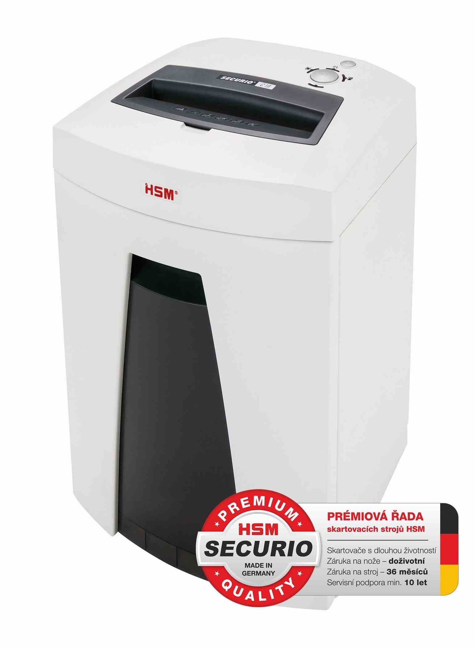HSM skartovač Securio C18 (řez: Podélný 3.9mm | vstup: 230mm | DIN: P-2 (2) | papír, sponky, plast. karty )