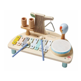 Dřevěný hudební stoleček se sadou 5 hudebních nástrojů pro děti, s motivem lesní říše, rozzáří očka každému dítku a probudí v něm lásku k hudbě. Hudební stoleček v jemných pastelových barvách obsahuje základní dětské hudební nástroje, které stimulují smysly, zdokonalují jemnou motoriku, seznámí děti s tím, jaké zvuky který nástroj vydává, jak se na něj hraje..