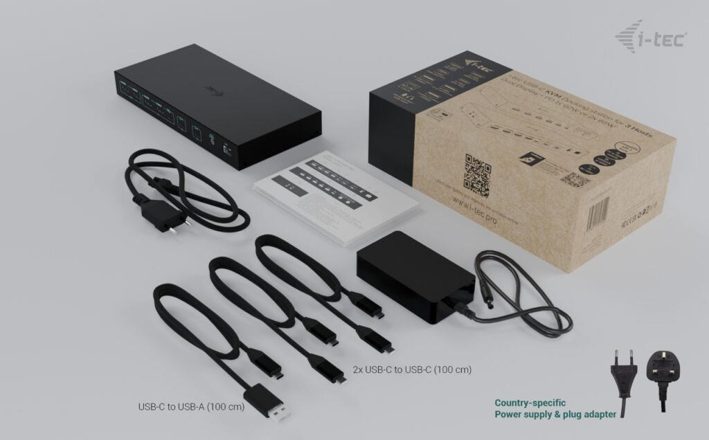 i-tec USB-C KVM Dock PRO for Three Hosts, Dual Video, with 2x Power Delivery, max 92W