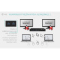 - Unikátní funkce USB roaming umožňuje sdílení dvou vyhrazených USB portů pro klávesnici a myš mezi dvěma hostiteli současně, což zajišťuje maximální efektivitu a pohodlí při přepínání mezi zařízeními.