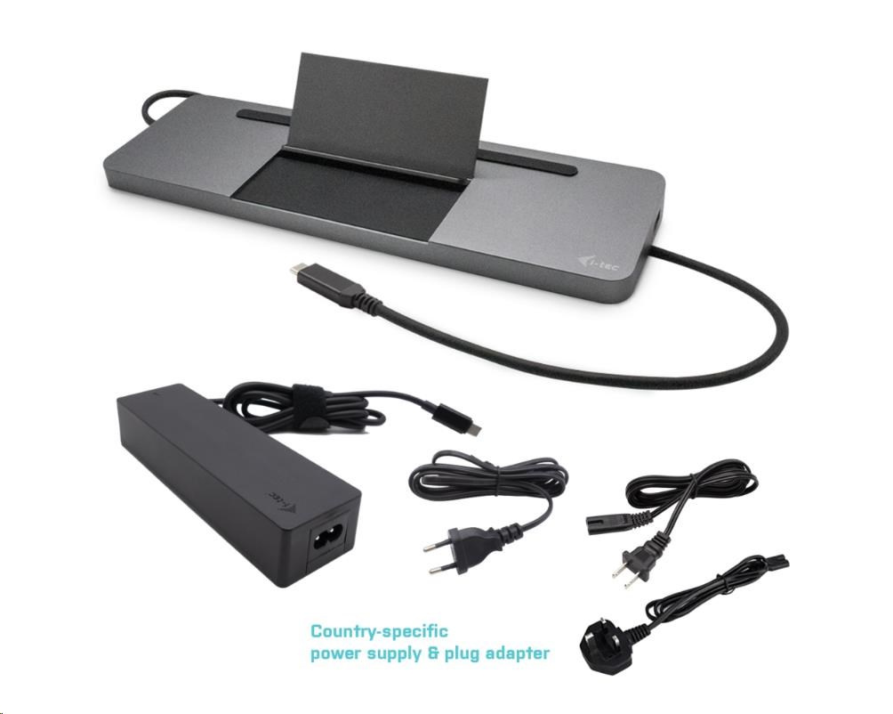 i-tec USB-C Metal Ergonomic 4K 3x Display Docking Station with Power Delivery 85W + i-tec Universal Charger 100W (bundle