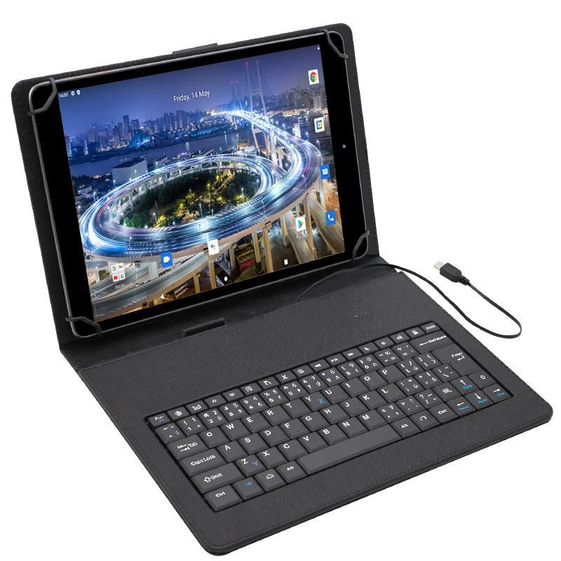 Pouzdro s klávesnicí iGET S10C je ideálním řešením ochrany vašeho tabletů proti poškrábání a zároveň rozšiřuje možnosti jeho uplatnění prostřednictvím externí klávesnice. Je určené pro většinu současně prodávaných 10.1“ a 10.36" tabletů. Jednou z hlavních předností je jeho univerzálnost a flexibilní způsob uchycení tabletu, díky kterému můžete bezpečně manipulovat se svým tabletem. Pouzdro je vyrobené z černé syntetické kůže. Tablet je v pouzdře uchycen pomoci čtyř plastových úchytů. Díky pružnému způsobu uchycení je tablet stále pevně sevřen a chráněn před vypadnutím z pouzdra, které se uzavírá pomocí magnetického klipu. Klávesnice umožňuje plnohodnotněji využívat váš tablet, zejména pro pracovní účely, kdy nepotřebujete byt vybavený klasickým počítačem nebo notebookem a zároveň nechcete dělat kompromisy. Funkčnost klávesnice iGET S10C je nezávislá od verze operačního systému avšak ne každá verze operačního systému zaručuje fungovaní všech Android kláves. Pro připojení k tabletu slouží univerzální USB-C konektor. Pouzdro dobře poslouží i jako stojánek při sledovaní videí a oblíbených filmů, kdy nemusíte tablet držet neustále v rukách. Konstrukce pouzdra s klávesnicí iGET S10C umožňuje přístup ke všem konektorům bez nutnosti vyjmutí tabletu ven, což ulehčuje jeho přepojení s dalšími perifériemi, jako sluchátka, externí reproduktory a jiné. Technické parametry: • Černá syntetická kůže • Magnetický klip pro uzavíraní • USB-C konektor Rozměry zavřeného pouzdra: 276 x 185 x 29 mm. Rozměry otevřeného pouzdra: 391 x 276 x 18 mm. Rozměry krabice pouzdra: 281 x 191 x 33 mm. Hmotnost: 414 g. Hmotnost balení: 466 g..