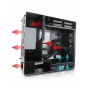 Oddělené pozice HDD a PSU zajišťují ideální proudění vzduchu skrz skříň ven zadními větracími otvory, aniž by se odvod teplého vzduchu brzdil o základní desky nebo grafické karty.