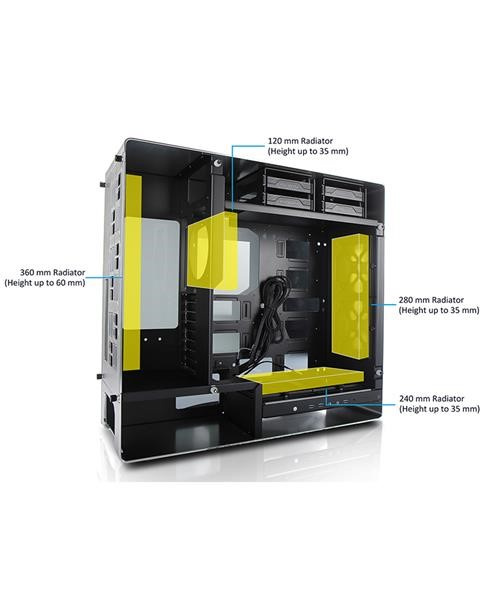 Počítačová skříň 909 je vyrobena z odolných materiálů, její zkosené hrany a hlavní konstrukce vyrobená z eloxovaného hliníku, vytváří v konečném výsledku mistrovské řemeslné dílo. Zadní designový panel skrývá veškerou kabeláž, a boční panely z tvrzeného skla dovršují moderní a dynamický vzhled.