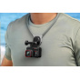 Pohodlný držák na krk pro kamery Insta360 GO 3S, GO 3, GO 2, X4, X3, ONE X2, Ace Pro 2 a ONE RS (4K i Twin edice) umožňuje natáčení z pohledu první osoby bez použití rukou. Má 360° otočnou základnu, rychlý uzamykací mechanismus a měkký, prodyšný silikon pro celodenní pohodlí.