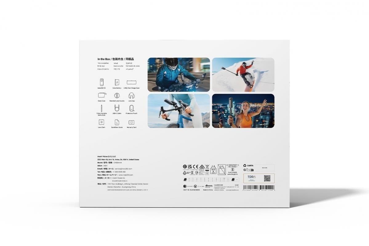 Akční 360° kamera Insta360 X5 se snímačem 1/1.28". Rozlišení 360° videa až 8K/30fps, při 4K až 120 fps. Foto rozlišení 72 Mpx. Vodotěsnost do 15 m, 6osá stabilizace FlowState, bitrate 180 Mbps, vylepšený noční režim. Baterie 2400 mAh s výdrží až 185 min. Nabízí InstaFrame mód pro okamžité sdílení, vylepšený zvuk s novou ochranou proti větru. Má odolné a vyměnitelné čočky. Rozměr kamery 46 x 124,5 x 38,2 mm. Essentials Bundle obsahuje standardní ochranná skla objektivů, selfie tyč 114 cm, krytku objektivů, 2x akumulátor, nabíjecí hub, úložné pouzdro..
