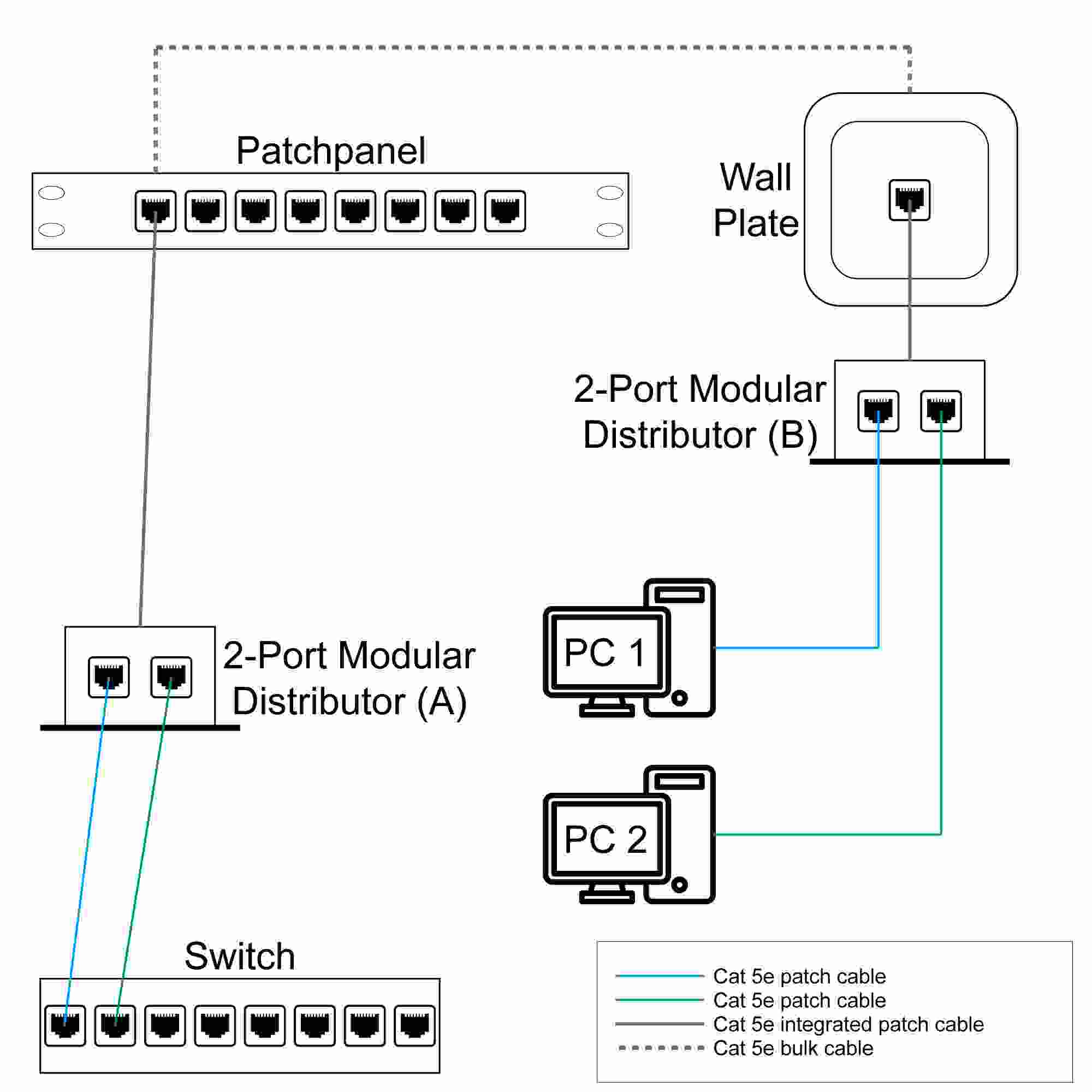 2-Port Modular Distributor FTP [504195] •Allows two RJ45 ports to share one Cat5 shielded network cable •Allows you to only lay one cable run for two connections •Used in pairs (one modular distributor on each end of the network cable) •Requires a coupler (female to female) for connection on each end of the network cable •Couplers not included Special Features •2 port, Double Shielded Color •Silver Specifications •Standards •IEEE 802.3 (10Base-T Ethernet) •IEEE 802.3u (100Base-TX Fast Ethernet) General •LAN ports: 2 RJ-45 10/100 Mbps data ports •Double-Shielded Package Contents •Modular Distributor.