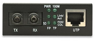 Fast Ethernet Media Converter 10/100Base-TX to 100Base-FX (ST) Multi-Mode, 2 km (1.24 mi) Color: Black •Data transfer rate: 100 Mbps •One 10/100Base-TX RJ45 port, maximum distance 100 m / 300 ft. •RJ45 port with Auto MDI/MDI-X support and auto-negotiation •One 100Base-FX multi-mode Fiber ST duplex port •Fiber distance support: up to 2 km / 1.24 mi (62.5/125 or 50/125 µm cable) •Wavelength: 1310 nm •Flow control •Status LEDs for power and Link/TX for both ports •External power adapter, 5 V DC.