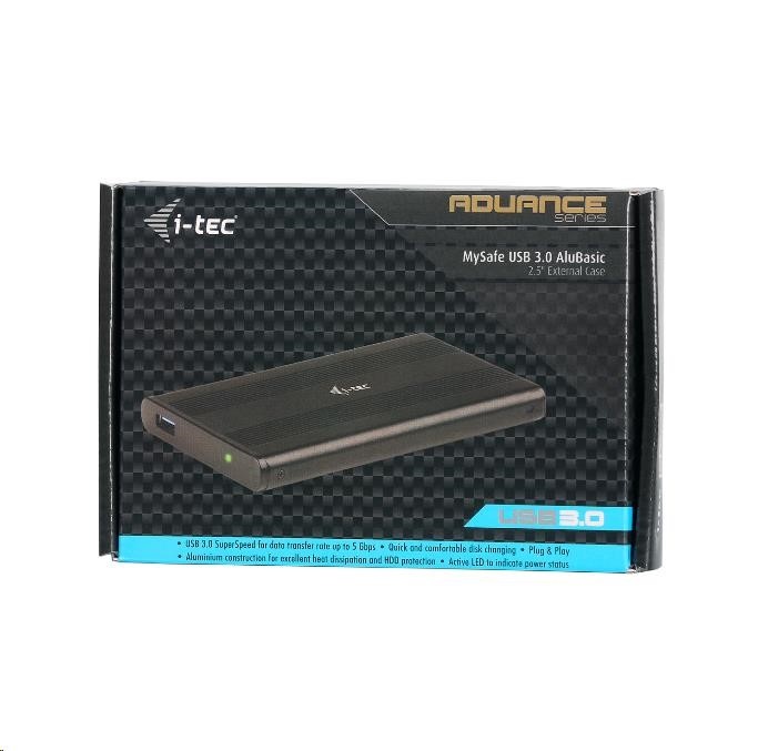 ADVANCE Series je nejvyšší řada příslušenství i-tec, která vám umožní využívat špičkové technologie produktů v moderním designu a exkluzivním balení. i-tec USB 3.0 MySafe AluBasic je externí rámeček pro všechny 2.5" SATA I/II/III HDD nebo SSD s výškou až 9.5 mm. Připojení přes USB 3.0 nabízí rychlý a snadný přenos dat (až 5 Gbps). Samozřejmostí je zpětná kompatibilita s USB 2.0. Pevná hliníková konstrukce pro optimální odvod tepla a ochranu disku. Rámeček je dodáván s USB kabelem.