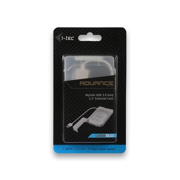 i-tec MySafe USB 3.0 Easy je externí rámeček pro připojení 2.5" SATA disků všech kapacit k vašemu PC, notebooku, TV či jinému multimediálnímu zařízení pomocí USB rozhraní, přes které je zároveň i napájen. Rámeček je rovněž vhodný k přesunu dat z poškozeného notebooku. Připojení přes USB 3.0 nabízí rychlý a snadný přenos dat (až 5 Gbps). Samozřejmostí je zpětná kompatibilita s USB 2.0.