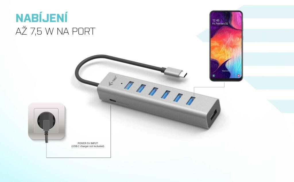 - Nabíjecí HUB USB-C až pro 7 zařízení