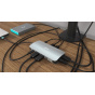 Konstrukce z broušeného hliníku zajistí dostatečnou odolnost dokovací stanice i při častém cestování. Integrovaný USB-C kabel je dostatečně dlouhý pro pohodlné připojení i v případě, že se USB-C port nachází na horní části rámu displeje (typické pro hybridní notebooky/tablety).