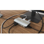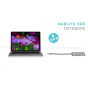 Malá kovová USB-C dokovací stanice, která dokáže snadno připojit externí monitor či projektor, a to prostřednictvím portu HDMI nebo VGA. Jednoduše připojte váš notebook či tablet (instalace ovladačů není nutná) a využijte rychlého datového USB, připojení k internetu prostřednictvím LAN portu, spolu s možností připojit vaše sluchátka a mikrofon. Samozřejmostí je podpora napájení vašeho notebooku, a to až do 100 W, což znamená, že budete schopni nabít všechny notebooky a tablety, které nabíjení prostřednictvím USB-C (USB-C Power Delivery) podporují.