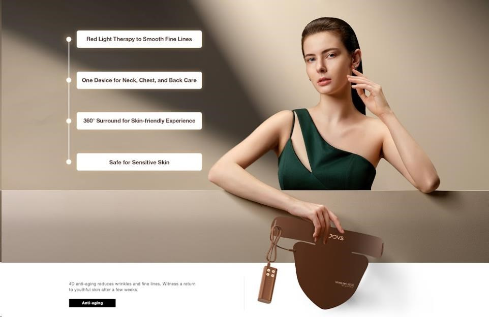 Péče o pleť nekončí u obličeje. Objevte profesionální ošetření pro často opomíjené partie a dopřejte si luxus, který vaše pokožka na krku, v dekoltu a na zádech pocítí i uvidí. Představujeme vám světelnou masku JOVS, inovativní řešení od prémiové značky, která přináší technologie z estetických klinik přímo k vám domů. Rozlučte se s nedokonalostmi a odhalte mladistvější a zářivější pokožku bez nutnosti drahých a časově náročných procedur v salonech.