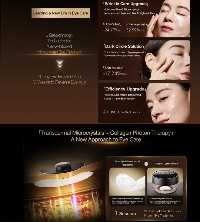 Oční okolí je nejjemnější a nejzranitelnější částí naší tváře, která stárne až 8krát rychleji než zbytek obličeje. Dopřejte mu péči, kterou si zaslouží, a objevte revoluční řešení, které přináší výsledky srovnatelné s profesionálními klinikami. Představujeme vám JOVS RevivaEye, první mikrokrystalické oční náplasti s technologií "Blackthorn" a světelnou terapií na trhu. Značka JOVS opět kombinuje špičkovou vědu a luxusní péči, aby vám poskytla komplexní omlazení očního okolí z pohodlí domova.
