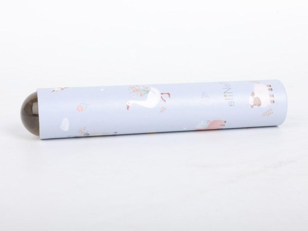 Kaleidoskop v neutrální pastelové barvě, s motivem zvířátek z farmy, v jejich skutečné, reálné podobě, je krásným dárkem pro zvídavé děti. Stačí krasohledem lehce otáčet a uspořádání sklíček a tedy i obrazce se budou měnit a přetvářet. Krasohled, optický přístroj, který pomocí sklíček a zrcadel vytváří kouzelné obrázky, rozvíjí u dětí fantazii a kreativitu..